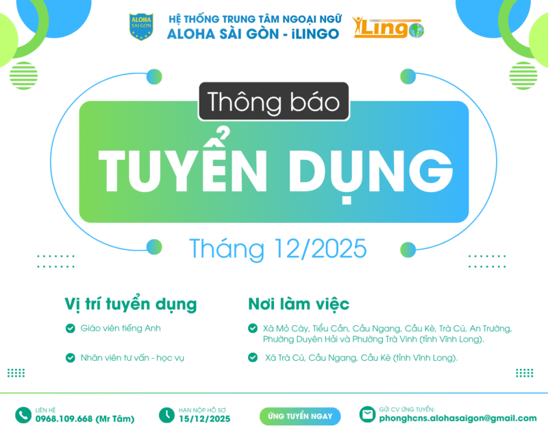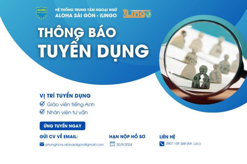 Hệ thống Ngoại ngữ ALOHA Sài Gòn – iLingo thông báo tuyển dụng các vị...