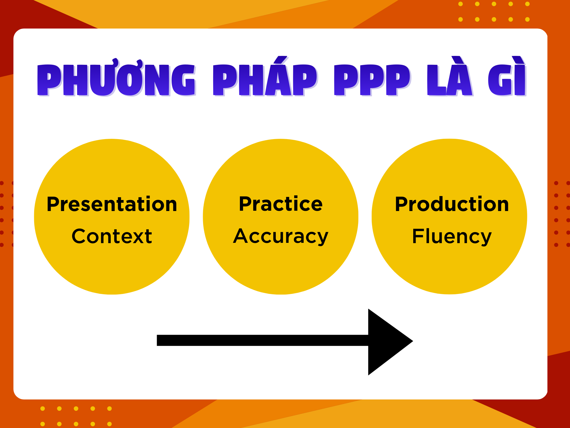 PPP là viết tắt của ba từ: Presentation (Trình bày), Practice (Thực hành) và Production (Ứng dụng). Đây là một quy trình giảng dạy truyền thống nhưng vô cùng hiệu quả trong việc truyền đạt ngôn ngữ mới.